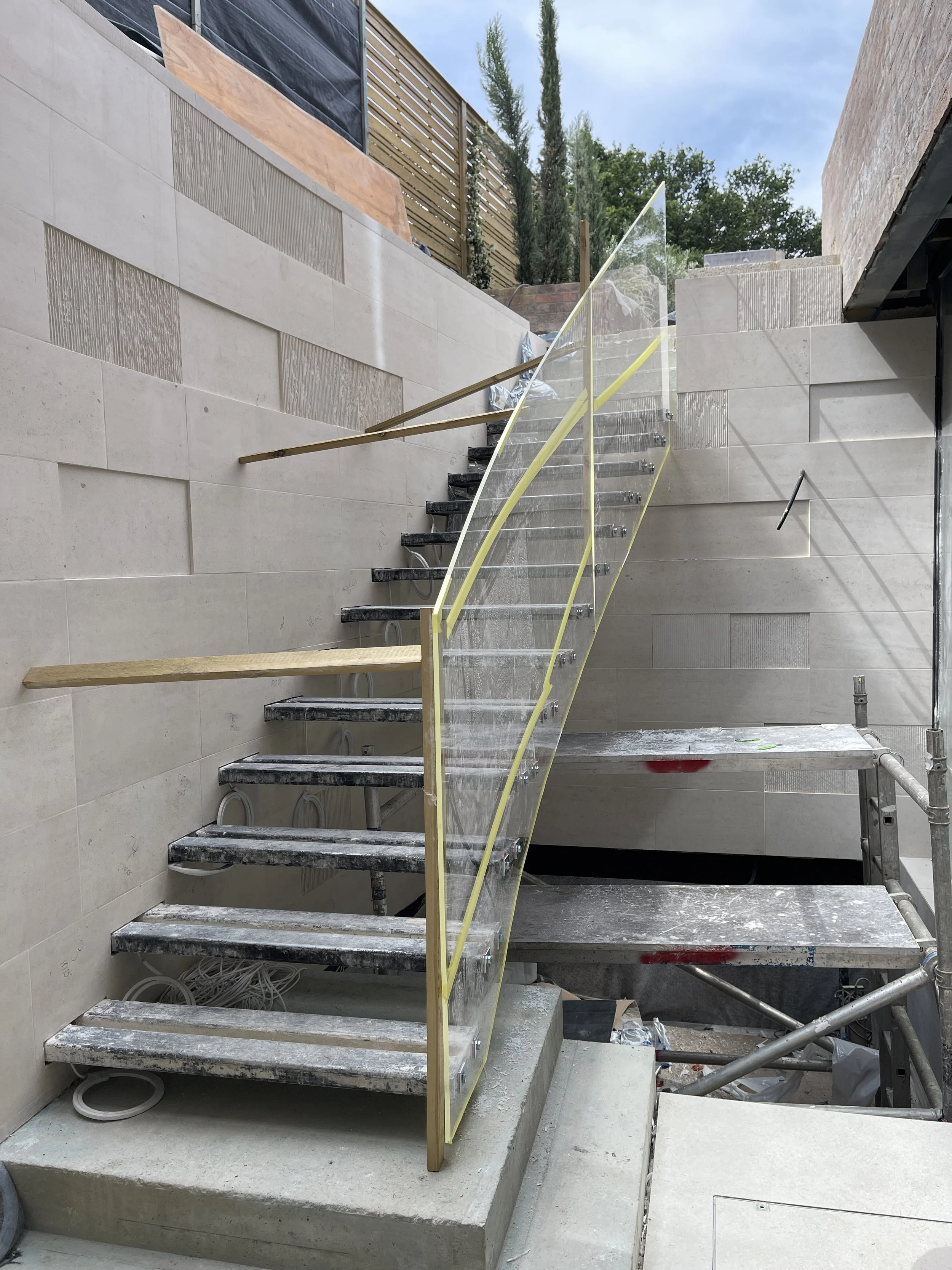 This project was distinctive in that the client required Metra to produce a 3D Model both before and after installation to conduct a comprehensive post-installation quality assurance review. The 3D Model needed to incorporate the existing curved glass handrail—an architectural feature central to the staircase design. Owing to the highly bespoke geometry of both the staircase and the handrail, the creation of an accurate and reliable 3D Model was essential for capturing the extensive and intricate spatial data present on site.
